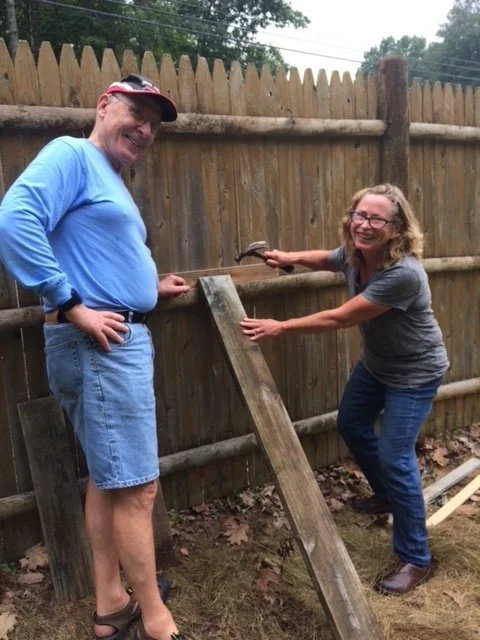 Ted and Molly work to repair a fence for someone in our community. This is one example of the many small tasks that our volunteers do - at no cost!